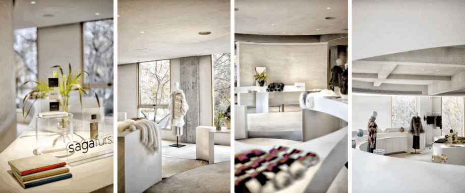 The architecture of the gallery provided an ideal dialogue partner for Saga Furs’ unique brand concept. Its natural light and minimalist volume allowed each piece to be perceived as an independent material artwork.