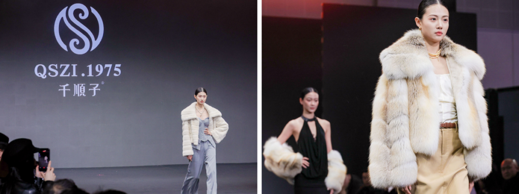 Caption 2: Qianshunzi presented an elegant old-money-style collection featuring exquisitely crafted mink and fox garments that blend timeless sophistication with luxurious texture.