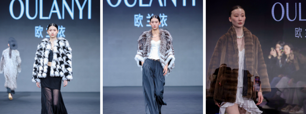 Caption 3: Oulanyi delivered a light luxury minimalist aesthetic, with sleek, understated mink and fox designs that cater to contemporary minimalist fashion tastes.