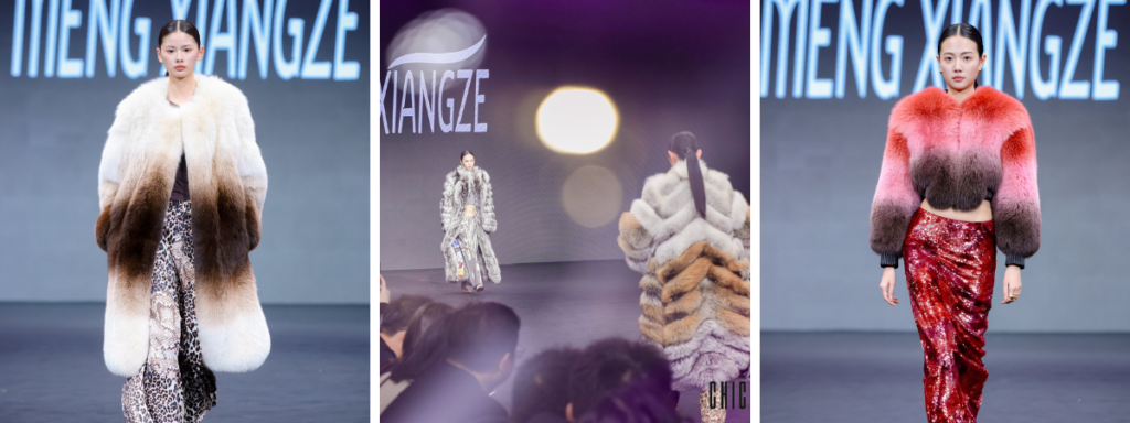 Caption 4: Meng Xiangze, focusing on fox fashion, brought a bold, innovative, and playful style to the runway, reimagining fox fur with cutting-edge designs and creative silhouettes.