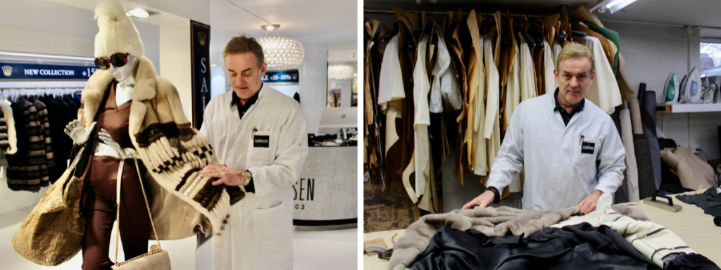 ”Ihmiset käyttävät sanoja vegaani ja nahka, koska heistä se kuulostaa hyvältä. Tässä ei ole mitään positiivista. Se on vain ajatusleikki”, Alex Petersenin pääturkkuri Steen Bergström kertoo asiakastapaamisten välissä. Turkisalan ammattilaisena hän on perillä tilastoista ja faktoista.