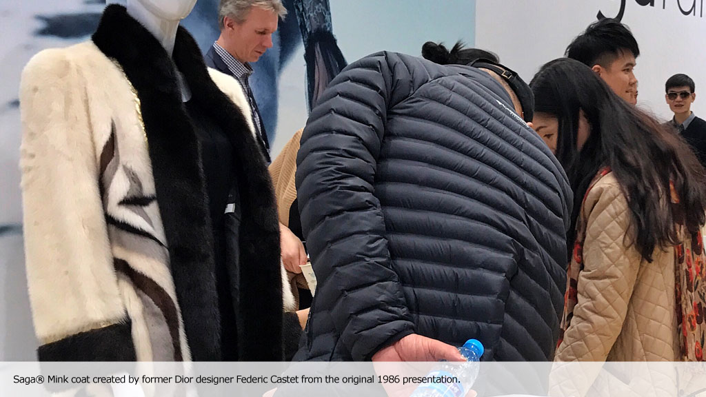 Na stoisku Saga Furs przedstawiona była pełna gama futer lisich, norczych i jenocich marki Saga®, a także próbki technik obróbki futer, opracowane w Centrum Projektowym Saga Furs. Specjalna kolekcja odzieży i dodatków futrzarskich, powstałych w pracowni Saga Furs, była przykładem tego, jak połączenie właściwych technik kroju z materiałem najwyższej jakości może przekształcić pomysły w końcowy produkt.