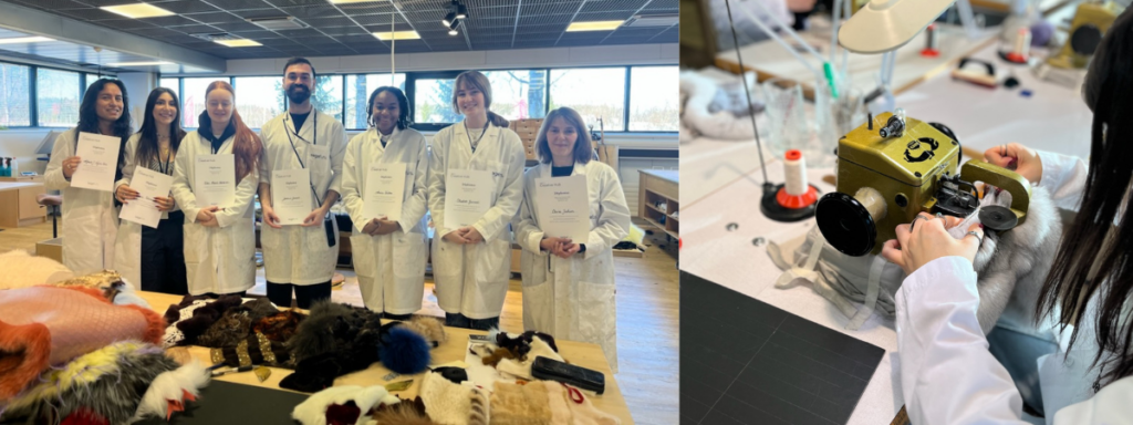 ”Det är fantastiskt att se hur glada studenterna är över att konkret få arbeta med pälsmaterialet och lära sig nytt. Vi känner oss verkligt välkomna och det hela är väldigt väl organiserat”, säger Claire Jochum, professor och textildesigner vid Paris College of Art.