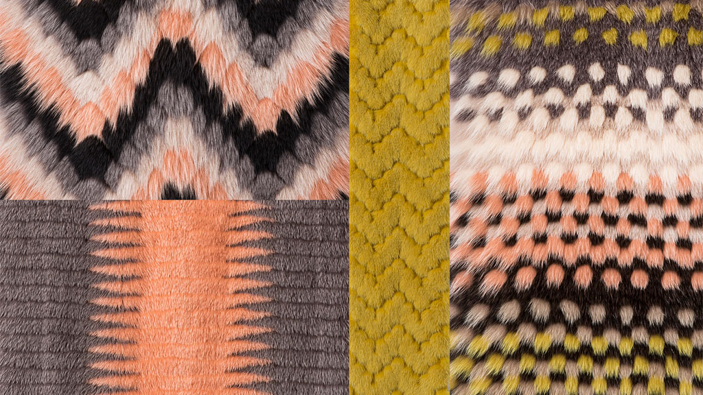 设计师丰富的想象力把几何元素演绎得变化多端,严谨细致的皮草工艺技术更是把设计师们的创意精准地呈现出来。外观效果取决于结构的变化,质地、毛的长度与色调则提供了光泽和维度的立体比对。棋盘图案、颜色组合和各种趣味十足的图形呈现出了奢华梦幻的3D立体效果。